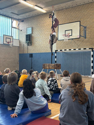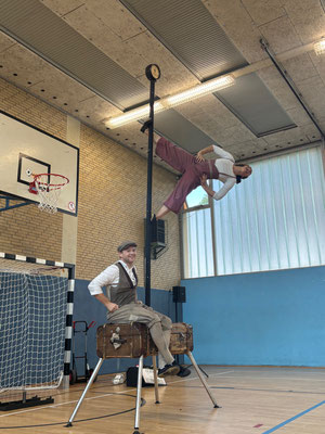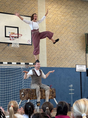 Am Mittwoch, 17.09.2025 verwandelte sich unsere Turnhalle in eine kleine Theaterbühne, denn zu Gast waren Mr. & Mrs. Twists mit ihrer humorvollen und akrobatischen Show „Ein Koffer voller Überraschungen“. Schon nach ein paar Minuten war klar - Langeweile kommt hier bestimmt nicht auf!